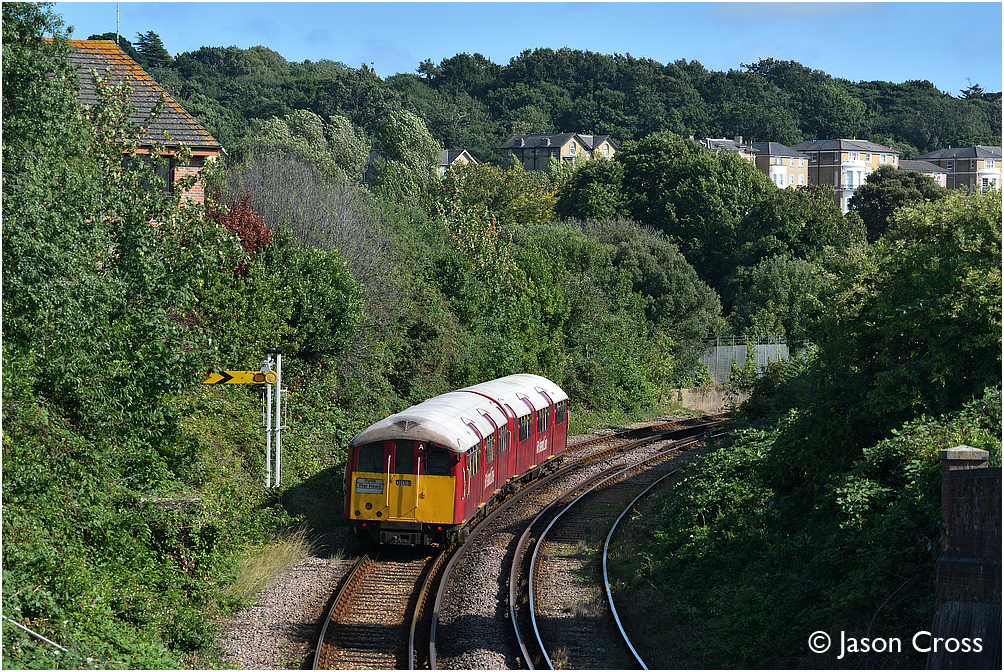 483008 passes the Ryde St John's Road southbound distant signal with the 2D45 1649 Ryde Pier Head to Shanklin. Date: 7 August 2019 Manipulation Notes: None