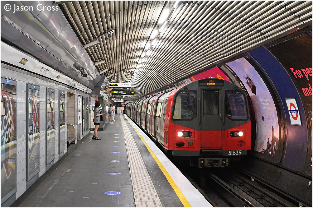 51629 at Old Street with a Morden bound Northern Line service. Date: 16 August 2020 Manipulation Notes: None