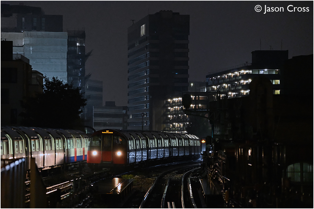 A train of 1973 Tube Stock approaches Ravenscourt Park with a Hammersmith to Heathrow Terminal 5 Piccadilly Line service. Date: 3 October 2020 Manipulation Notes: None