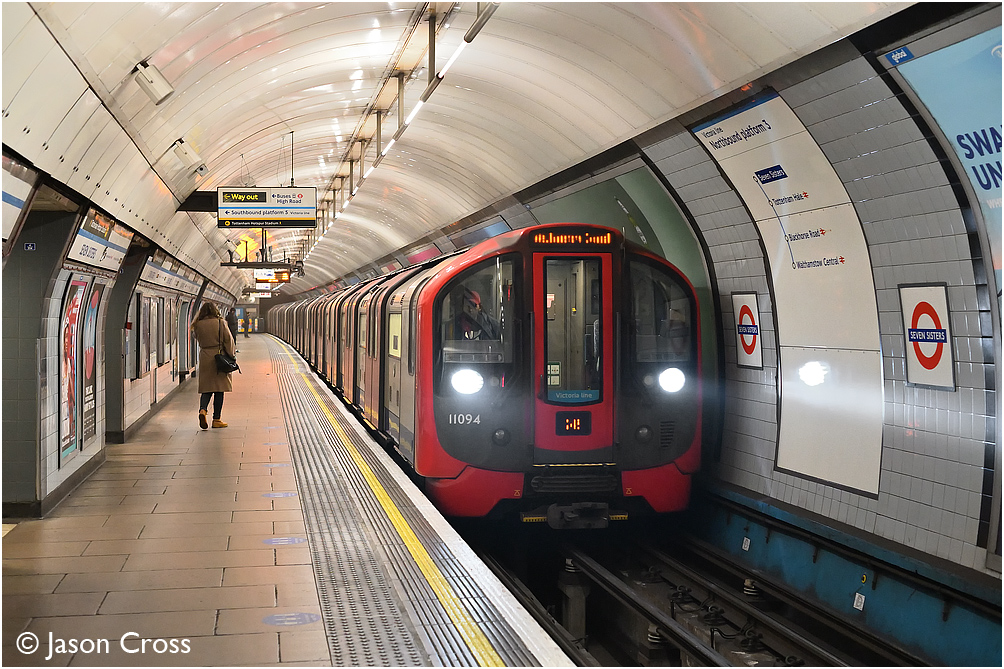 11094 arrives at Seven Sisters with a Brixton to Walthamstow Central Victoria Line service. Date: 10 October 2020 Manipulation Notes: None