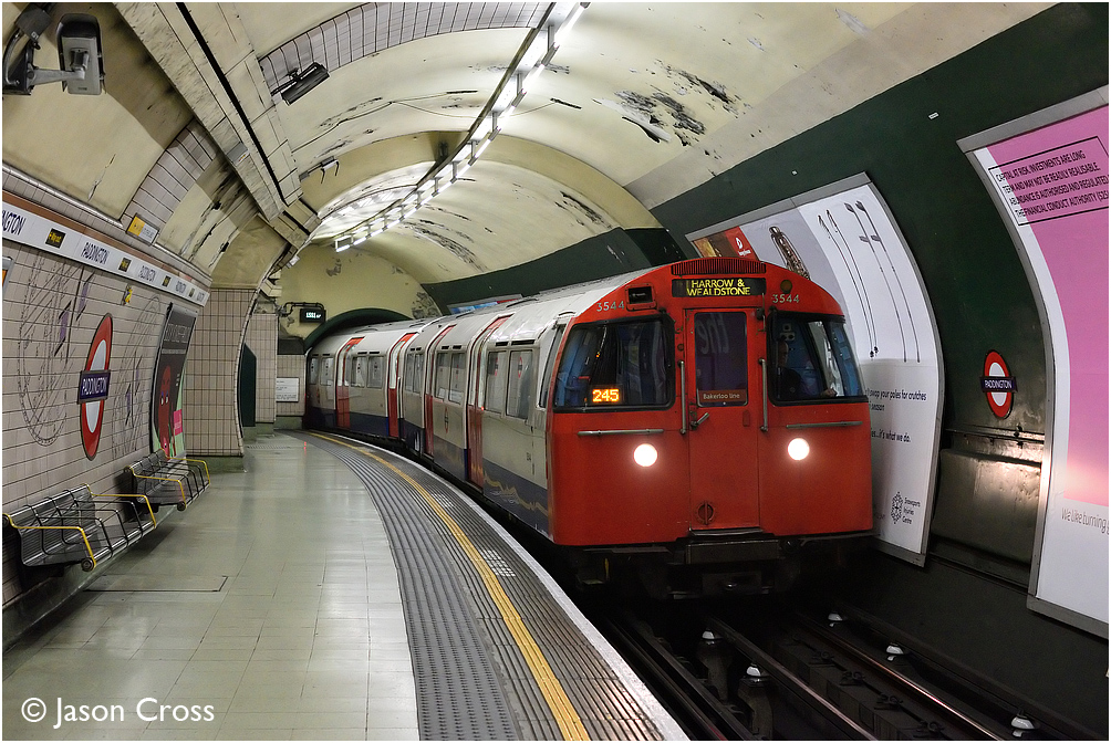3544 leads a northbound Bakerloo Line service into Paddington. Date: 28 February 2015 Manipulation Notes: None