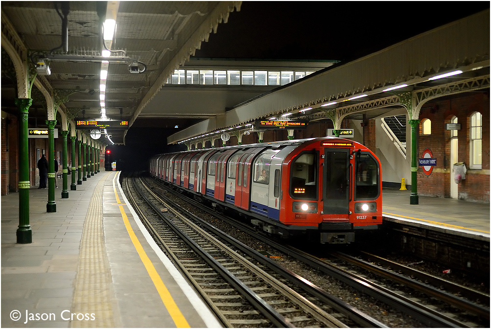 91237 leads a Central Line service for Hainault into Newbury Park. Date: 9 November 2013 Manipulation Notes: None