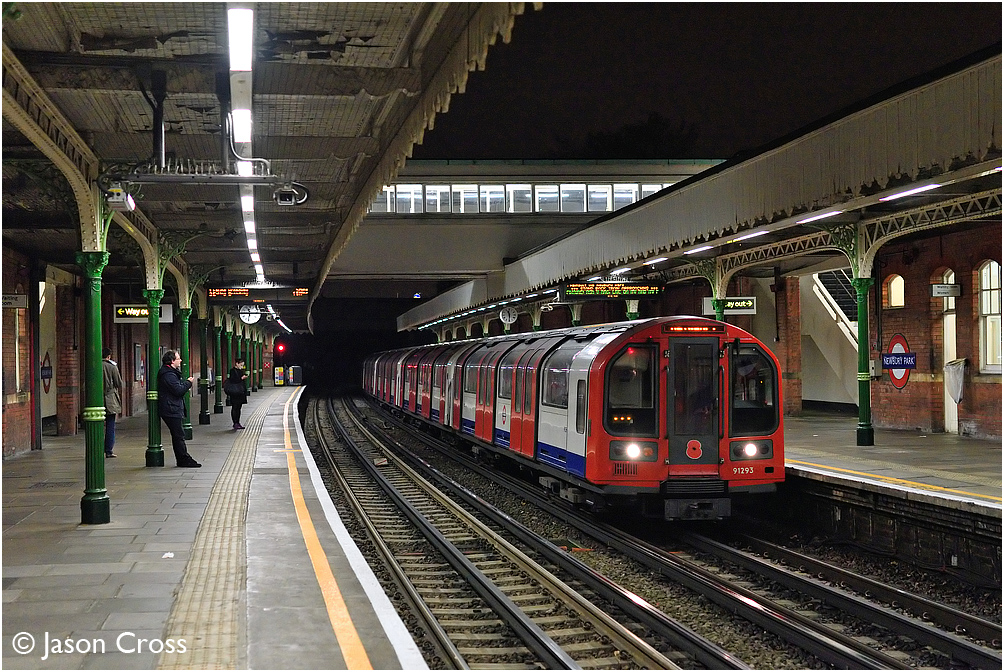 An eastbound (inner rail) Central Line train at Newbury Park. Date: 29 October 2015 Manipulation Notes: None
