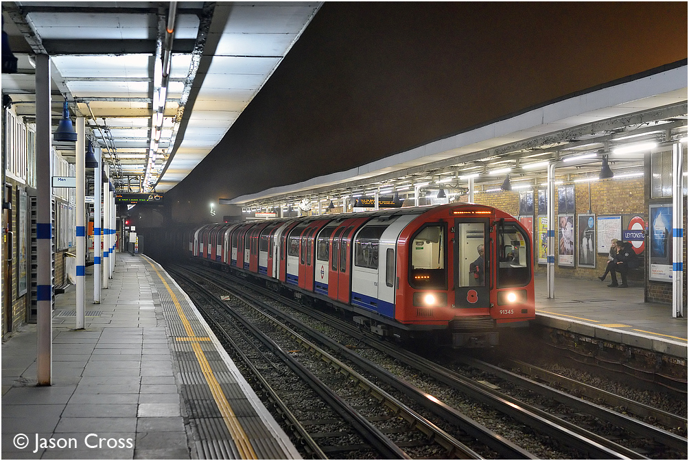 An eastbound Central Line service arrives at Leytonstone. Date: 1 November 2015 Manipulation Notes: None