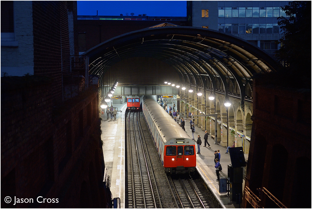 Dawn at Notting Hill Gate with C Stock on both the inner rail and the outer rail. Date: 19 October 2013 Manipulation Notes: None