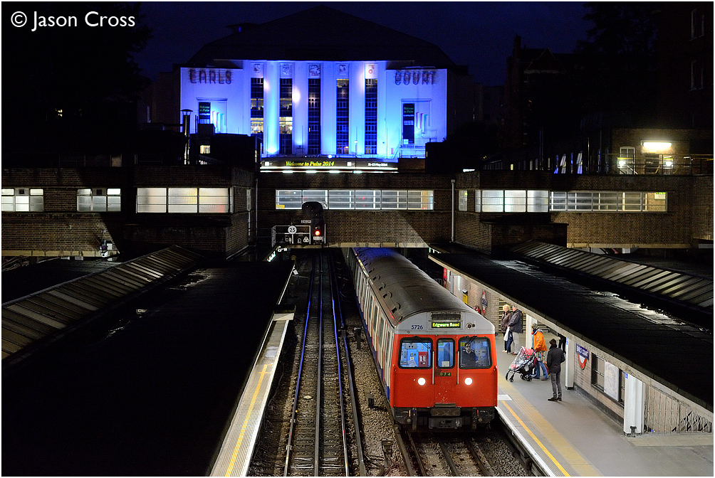 C Stock 5726 arriving at Earl's Court with a District Line service from Wimbledon to Edgware Road. Date: 10 May 2014 Manipulation Notes: None
