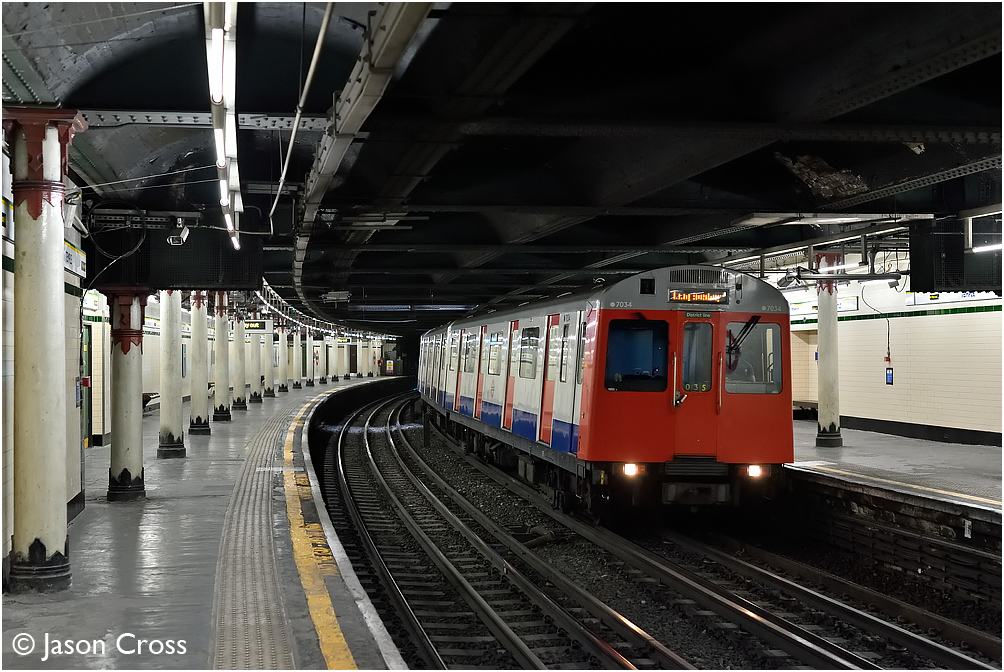 7006 leads a Tower Hill to Ealing Broadway District Line service into Temple. Date: 20 March 2016 Manipulation Notes: None