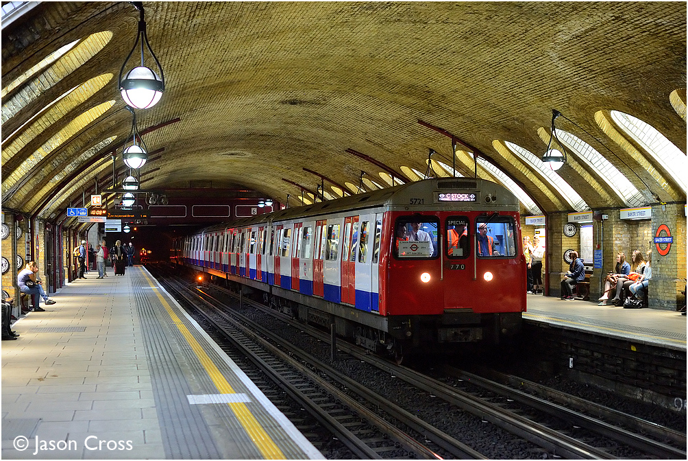 Led by C77 unit 5721-6721, the 'C Stock Farewell Railtour' passes through Baker Street. Date: 29 June 2014 Manipulation Notes: None