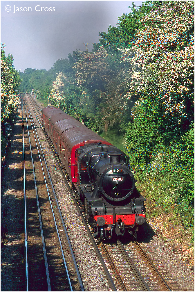 2968 approaches Croxley with a Watford to Amersham train. 'Steam on the Met' 1998. Date: 16 May 1998 Manipulation Notes: None