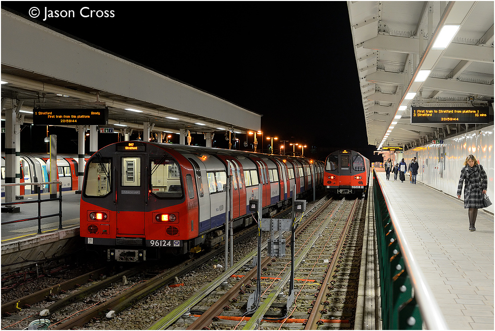 Jubilee Line 1996 Stock at the terminus of the line at Stanmore. Date: 4 October 2014 Manipulation Notes: None