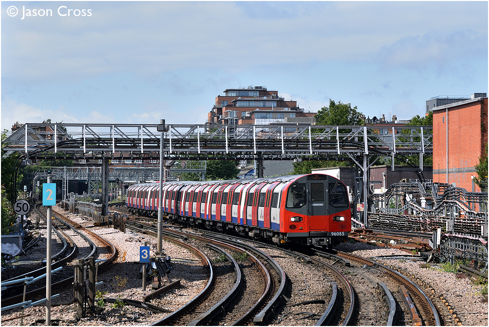 96085 approaches Finchley Road with a Wembley Park to Stratford Jubilee Line service. Date: 18 August 2019 Manipulation Notes: None