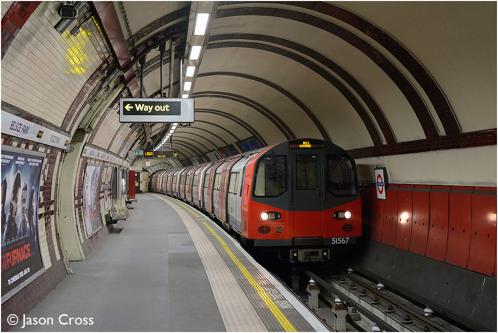 51567 leads an Edgware bound Northern Line service into Belsize Park. Date: 18 January 2014 Manipulation Notes: None