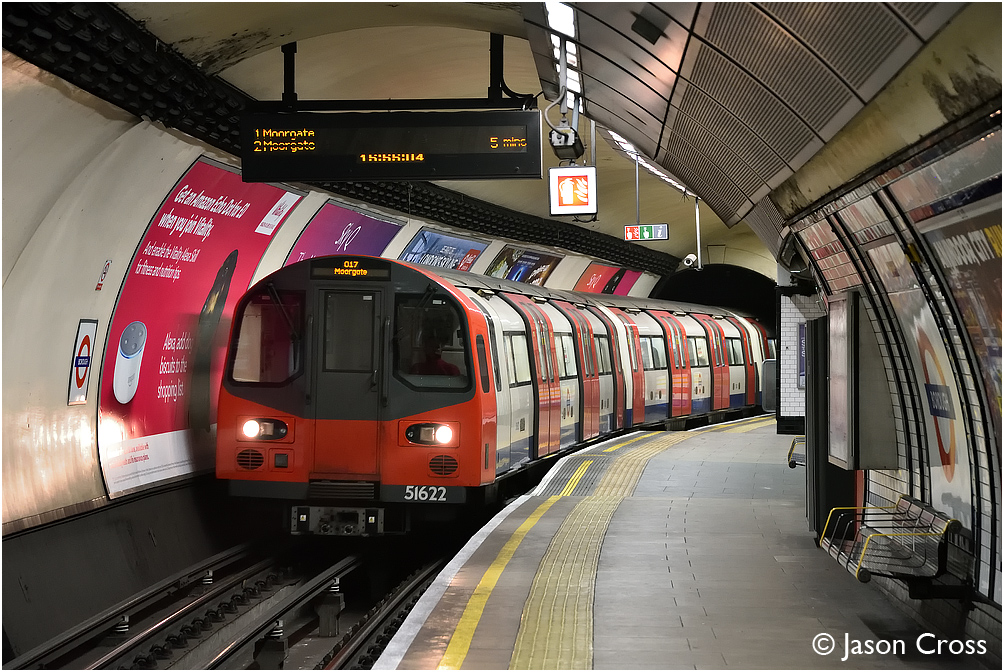 Charing Cross and Moorgate. 51622 leads a Morden to Moorgate service into