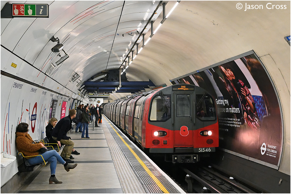 51546 arrives at Embankment with an Edgware to Kennington service. Date: 9 November 2019 Manipulation Notes: None