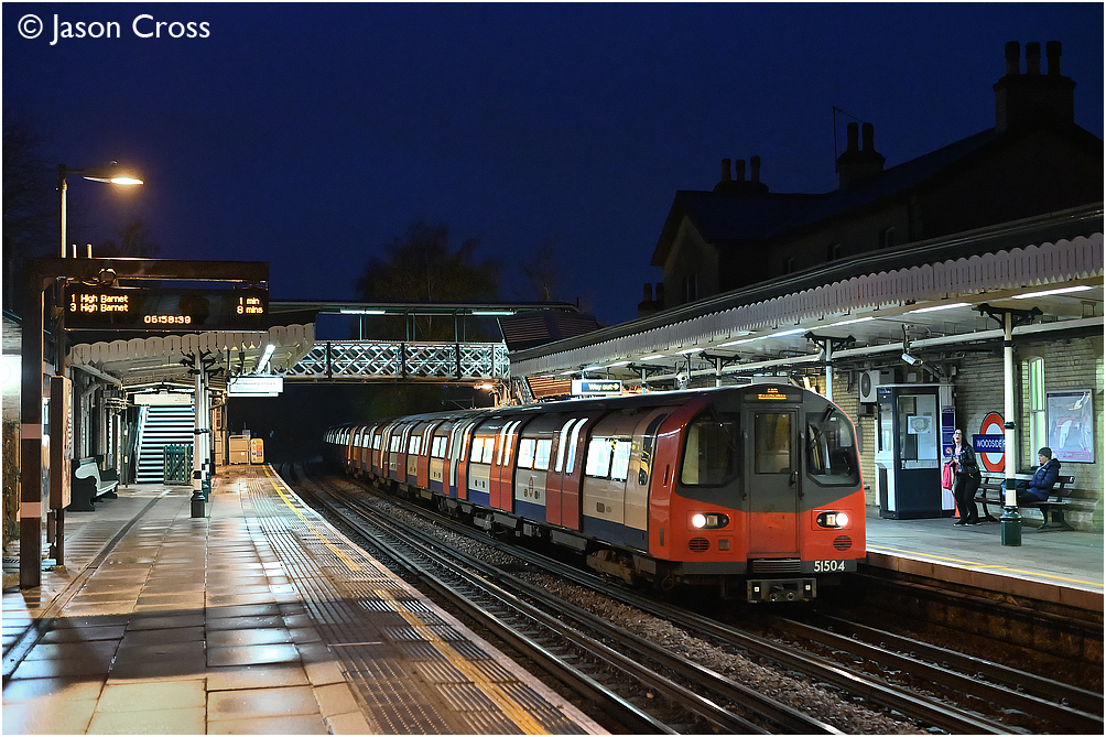51504 leads a High Barnet to Kennington via Charing Cross service into Woodside Park. Date: 23 November 2019 Manipulation Notes: None