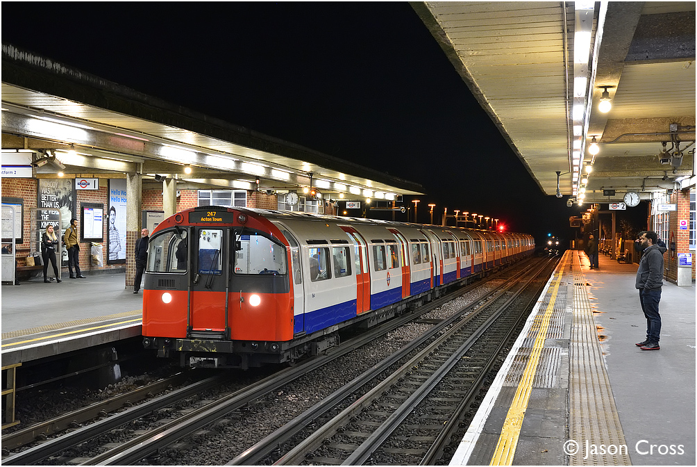 Due to late running, this Uxbridge bound train has been reversed in the platform at Rayners Lane and is about to depart for Acton Town. Date: 29 March 2018 Manipulation Notes: None