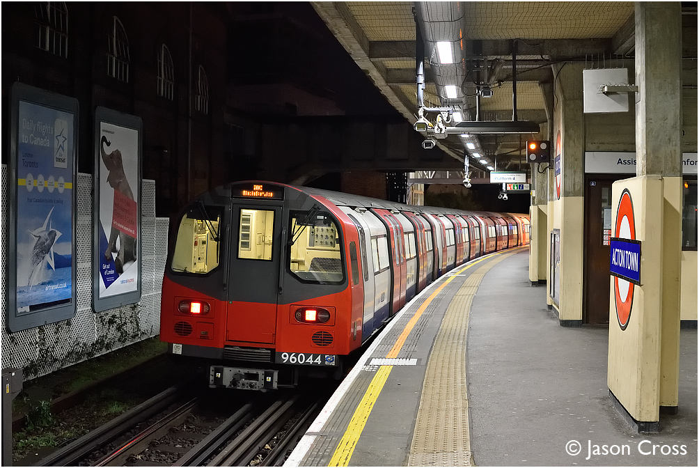 District and Piccadilly Lines is a train of 1996 Tube Stock from the Jubilee