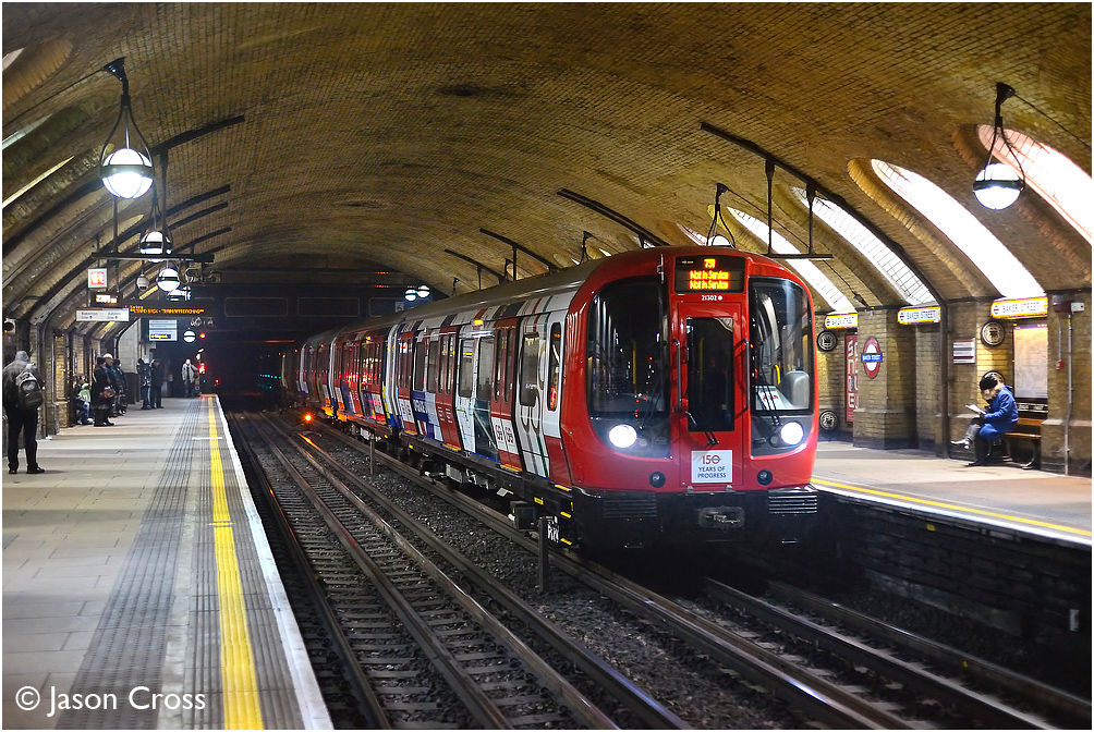 21302-21301 passes through Baker Street with a Moorgate to Hammersmith empty