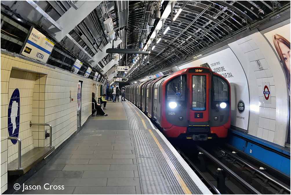 2009 Stock 11071 leads a Brixton bound Victoria Line service into Victoria. Date: 20 August 2016 Manipulation Notes: None