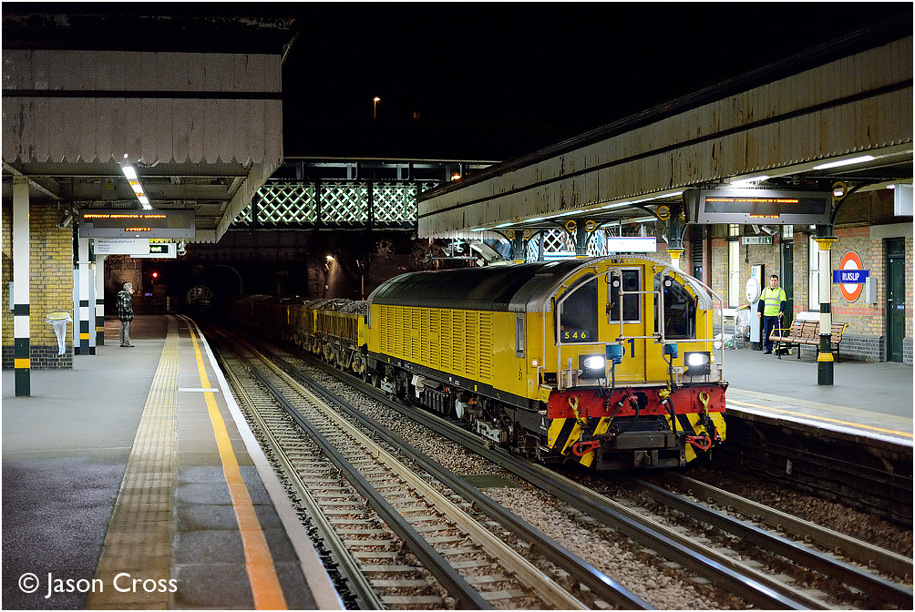 Battery loco L51 hauls train 546, the 2251 Ruislip Depot to Temple engineer's train through Ruislip. Date: 24 October 2014 Manipulation Notes: None