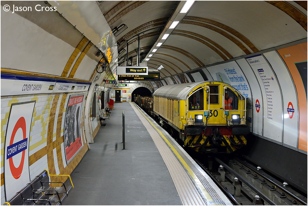 L30 at Covent Garden with an engineer's train heading for Victoria on the Victoria Line. Date: 4 December 2014 Manipulation Notes: None