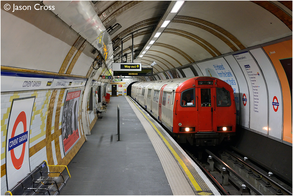 The Track Recording Train L132+TRC666+L133 passes through Covent Garden on its way to the Northern Line. Date: 4 December 2014 Manipulation Notes: None