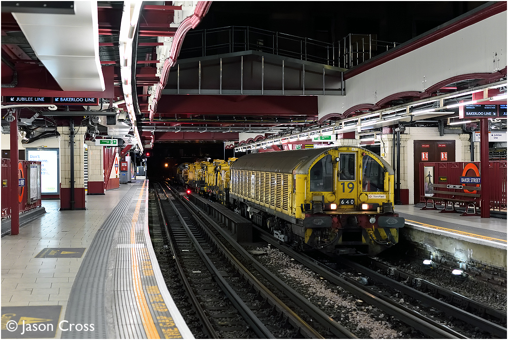 L19 arrives at Baker Street with a Ruislip Depot to Liverpool Street engineer's train. Date: 30 July 2015 Manipulation Notes: None