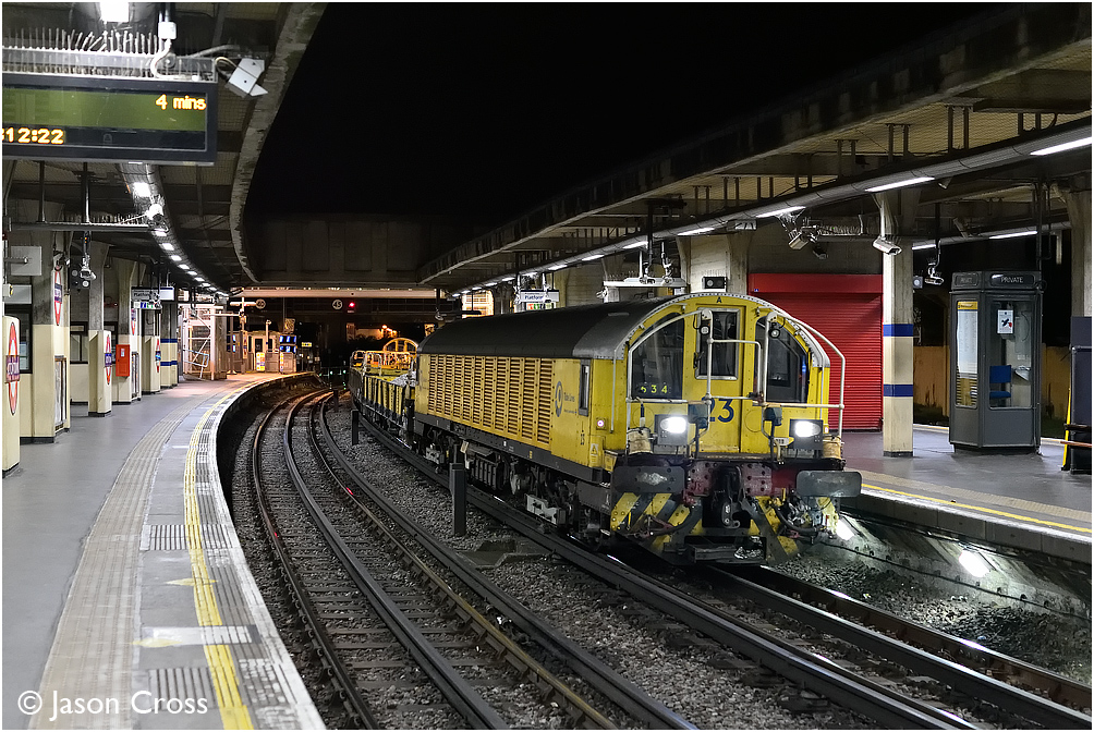 L23 leads train 634 through Acton Town as it heads for Hatton Cross having just reversed in the sidings east of the station. Date: 7 October 2016 Manipulation Notes: None