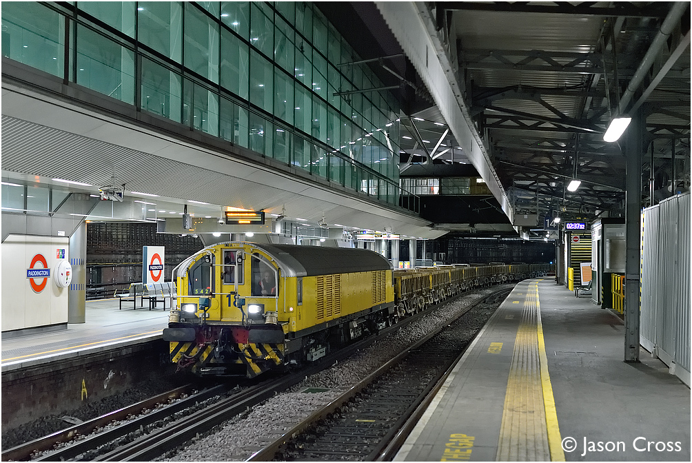 L18 passes through Paddington at the head of train 542, a Ruislip Depot to Royal Oak engineer's train. Date: 29 October 2016 Manipulation Notes: None