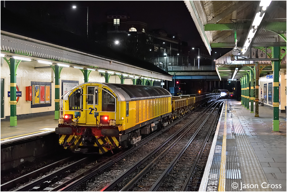 L22 is on the rear of train 643, a 2330 Ruislip Depot to Euston Square engineer's train as it passes through West Kensington. Date: 4 March 2017 Manipulation Notes: None