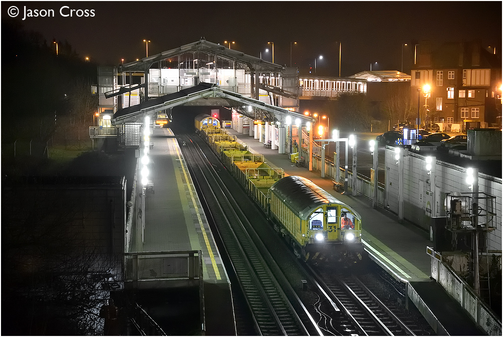 L31 passes through Hillingdon with train 544, an 0124 Ruislip Depot to Uxbridge engineer's train. Date: 17 March 2018 Manipulation Notes: None