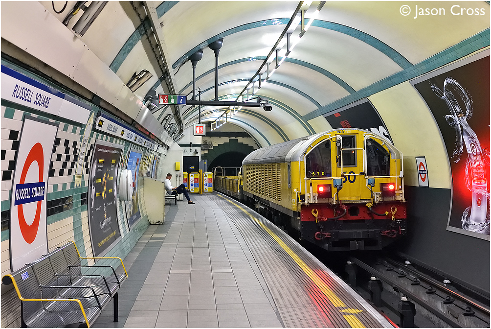 L50 passing through Russell Square on the rear of train 620, a 2330 Ruislip Depot to Kennington engineer's train. Date: 17 June 2018 Manipulation Notes: None