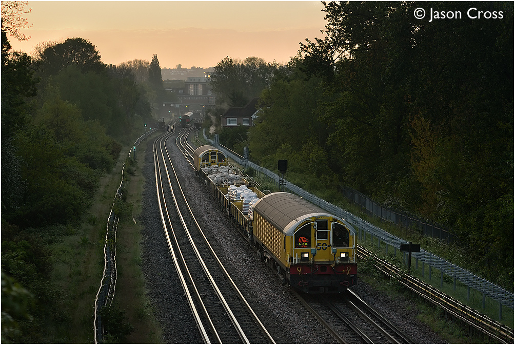 L50 and L53 head through Rayners Lane with a Mornington Crescent to Ruislip Depot engineer's train. Date: 9 May 2019 Manipulation Notes: None