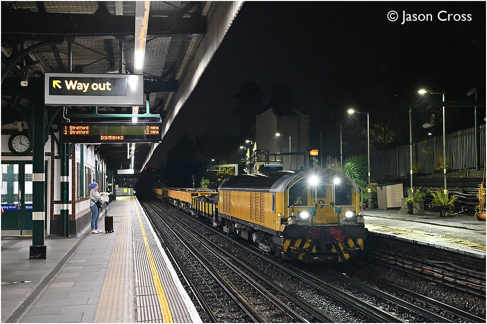 L19 passes through Willesden Green with a Ruislip Depot to Finchley Road engineer's train. Date: 23 November 2019 Manipulation Notes: None
