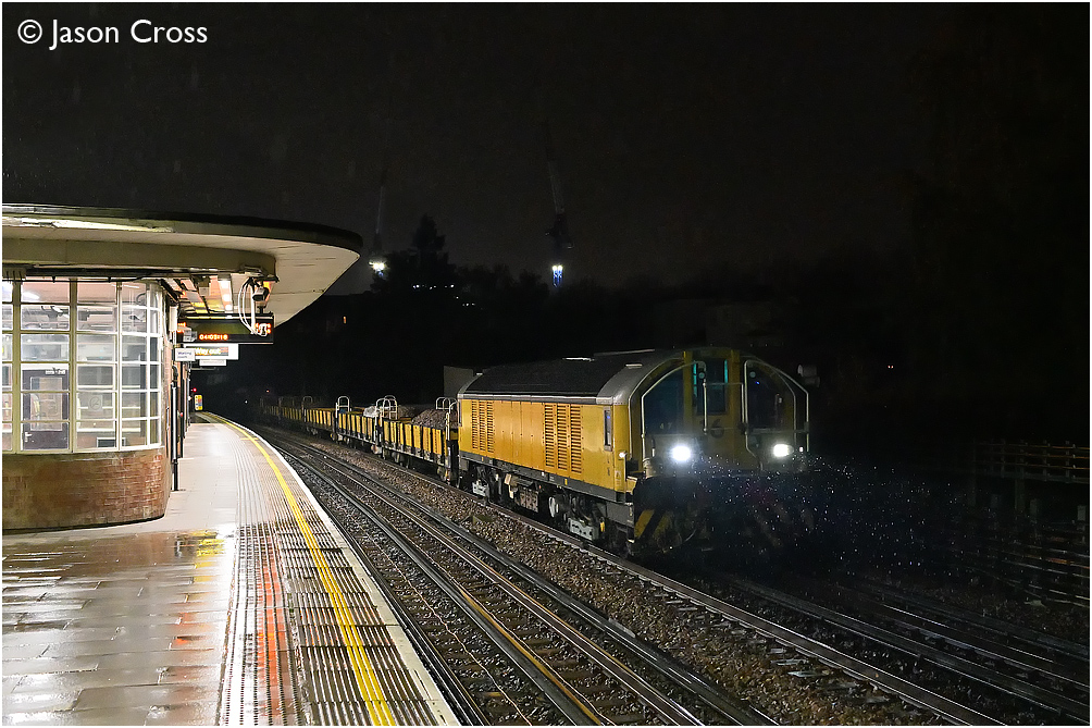 L16 passes through Dollis Hill with a Ruislip Depot to Finchley Road engineer's train. Date: 23 November 2019 Manipulation Notes: None