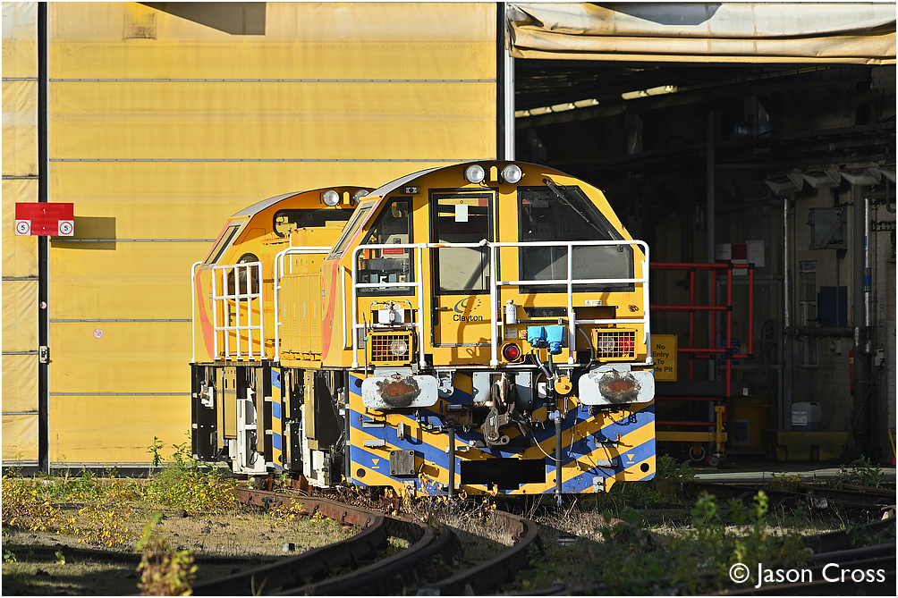 Battery Schöma locomotives 4 and 7 in Ruislip Depot. Photo taken during an authorised visit. Date: 14 December 2019 Manipulation Notes: None