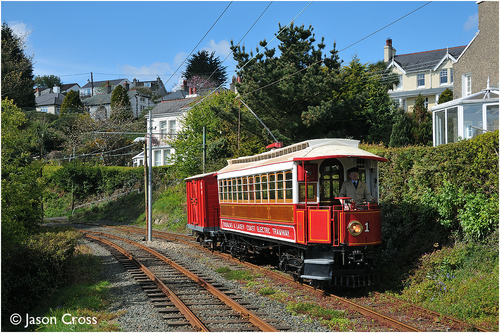 Car 1 and mail van 4 approach Fairy Cottage on the descent into Laxey. David Williams photo charter. Date: 20 April 2013 Manipulation Notes: None