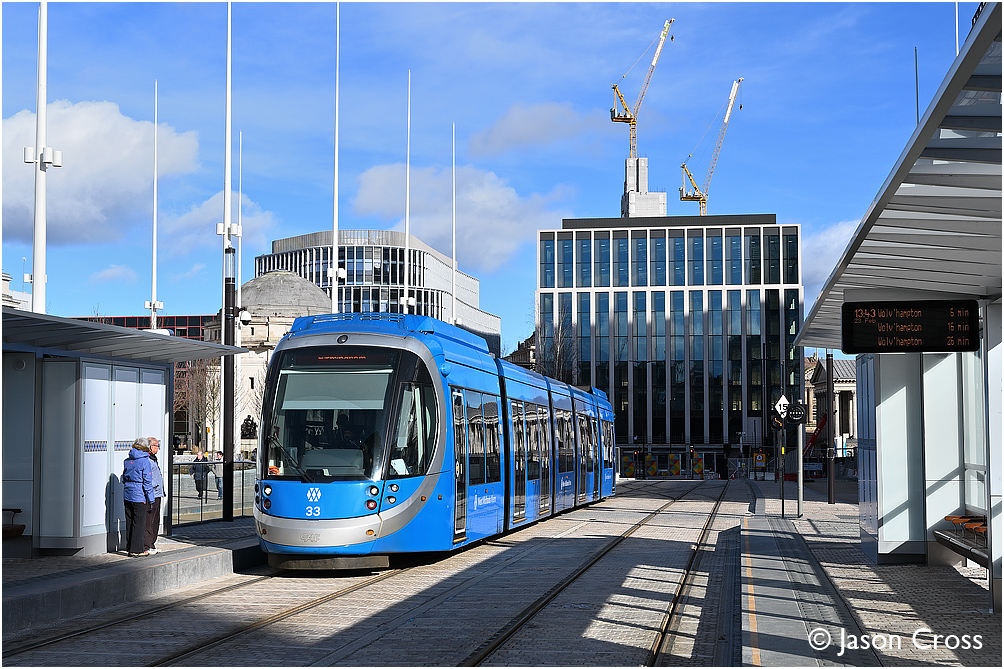 33 arrives at Centenary Square in Birmingham with a service from Wolverhampton St George's. Date: 23 February 2020 Manipulation Notes: None