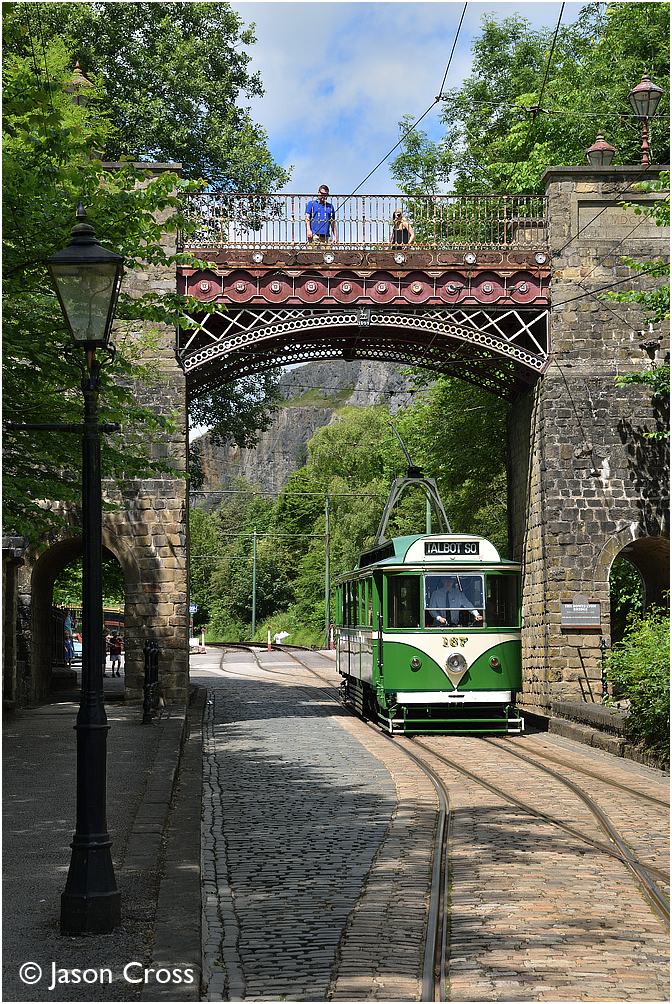 Blackpool 167 passes under the Bowes Lyon bridge at the National Tramway Museum. Date: 30 June 2019 Manipulation Notes: None
