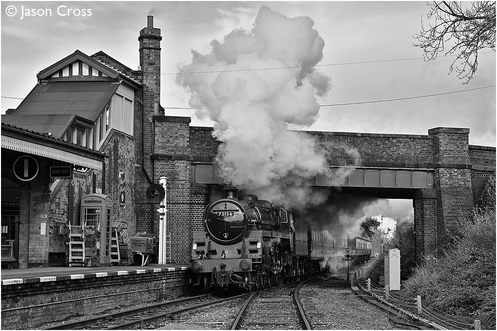 73156 arrives at Quorn & Woodhouse with the 0915 ECS from Loughborough Central. Date: 25 October 2020 Manipulation Notes: None