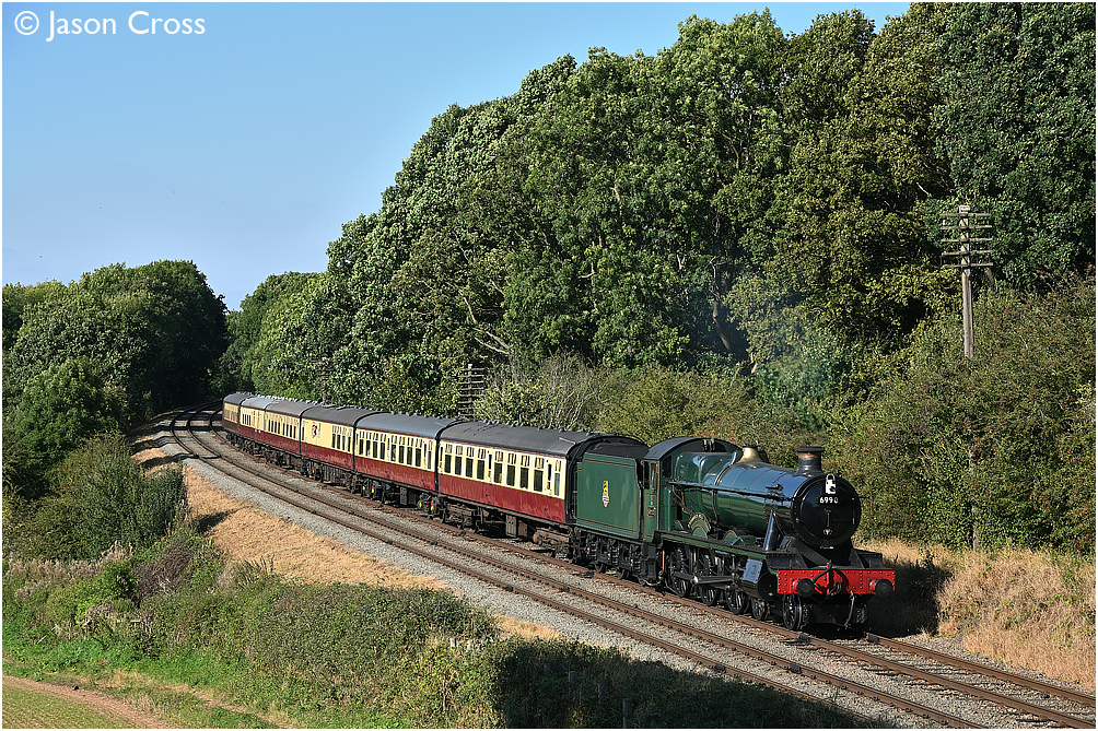 6990 'Witherslack Hall' passes Kinchley Lane with the 1445 Loughborough Central to Leicester North. Date: 26 September 2021 Manipulation Notes: None
