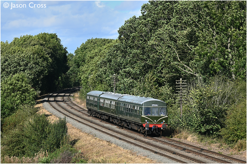 Class 101 DMU 51427+59575+50321 passes Kinchley Lane with the 1300 Loughborough Central to Rothley. GCR Autumn Steam Gala. Date: 3 October 2021 Manipulation Notes: None
