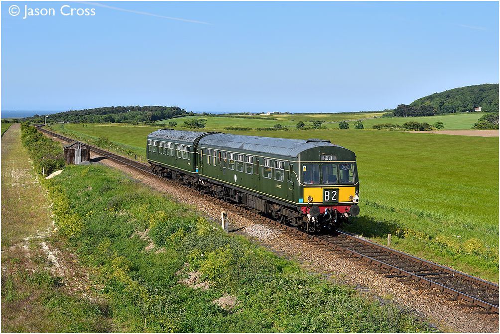 51192 and 54352 departs from Weybourne with the 1700 Holt to Sheringham. Date: 11 June 2015 Manipulation Notes: None Camera mounted on a tall pole and remotely fired
