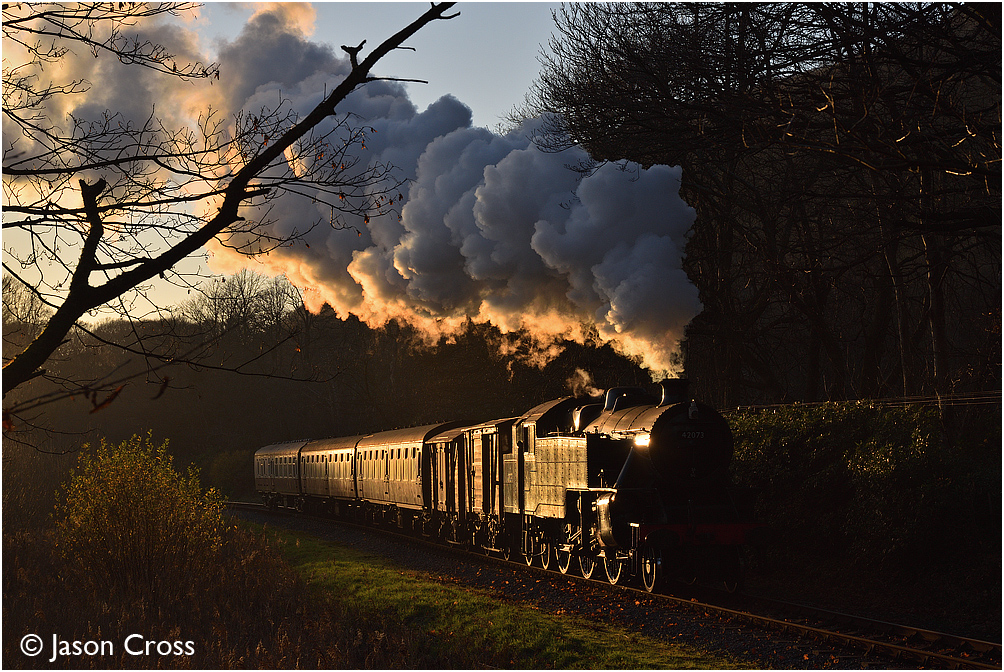 Fairburn 2-6-4T 42073 catches a golden glint as it approaches Lakeside. Peter Van Campenhout photo charter. Date: 18 November 2018 Manipulation Notes: None