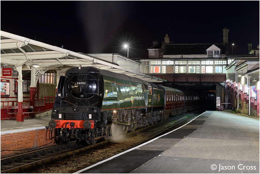 34092 arrives at Keighley.