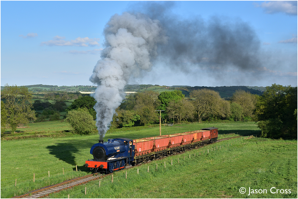 NCB No.7 'Wimblebury' wakes up most of Staffordshire as it attacks Foxfield Bank. EMRPS photo charter. Date: 13 May 2018 Manipulation Notes: None Camera mounted on a tall pole and remotely fired