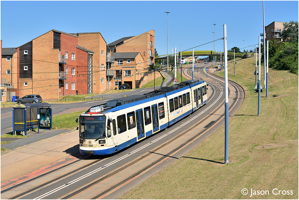 Bridge to Birley Lane service. The destination on the tram reads 'Halfway', but