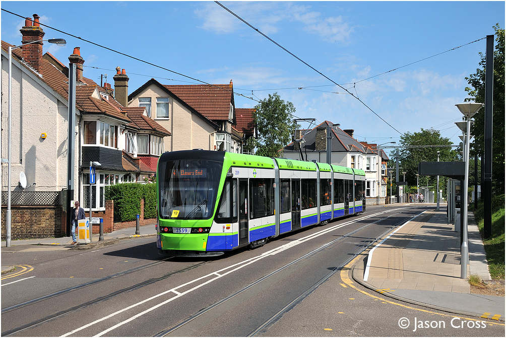 2559 slows for the Lebanon Road stop with a line 4 Therapia Lane to Elmers End service. Date: 18 August 2012 Manipulation Notes: None