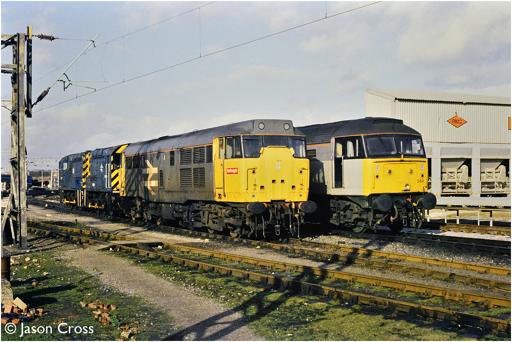 31155 and 47289 stabled with two class 08s at Bletchley.