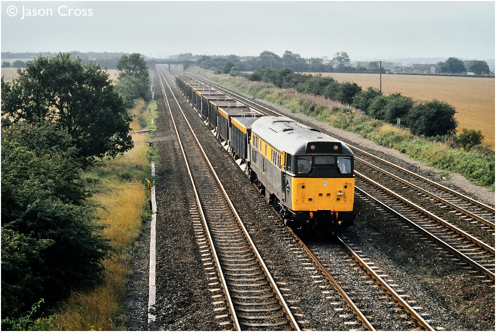 31203 passes Cossington with a northbound rake of empty ballast hoppers.
